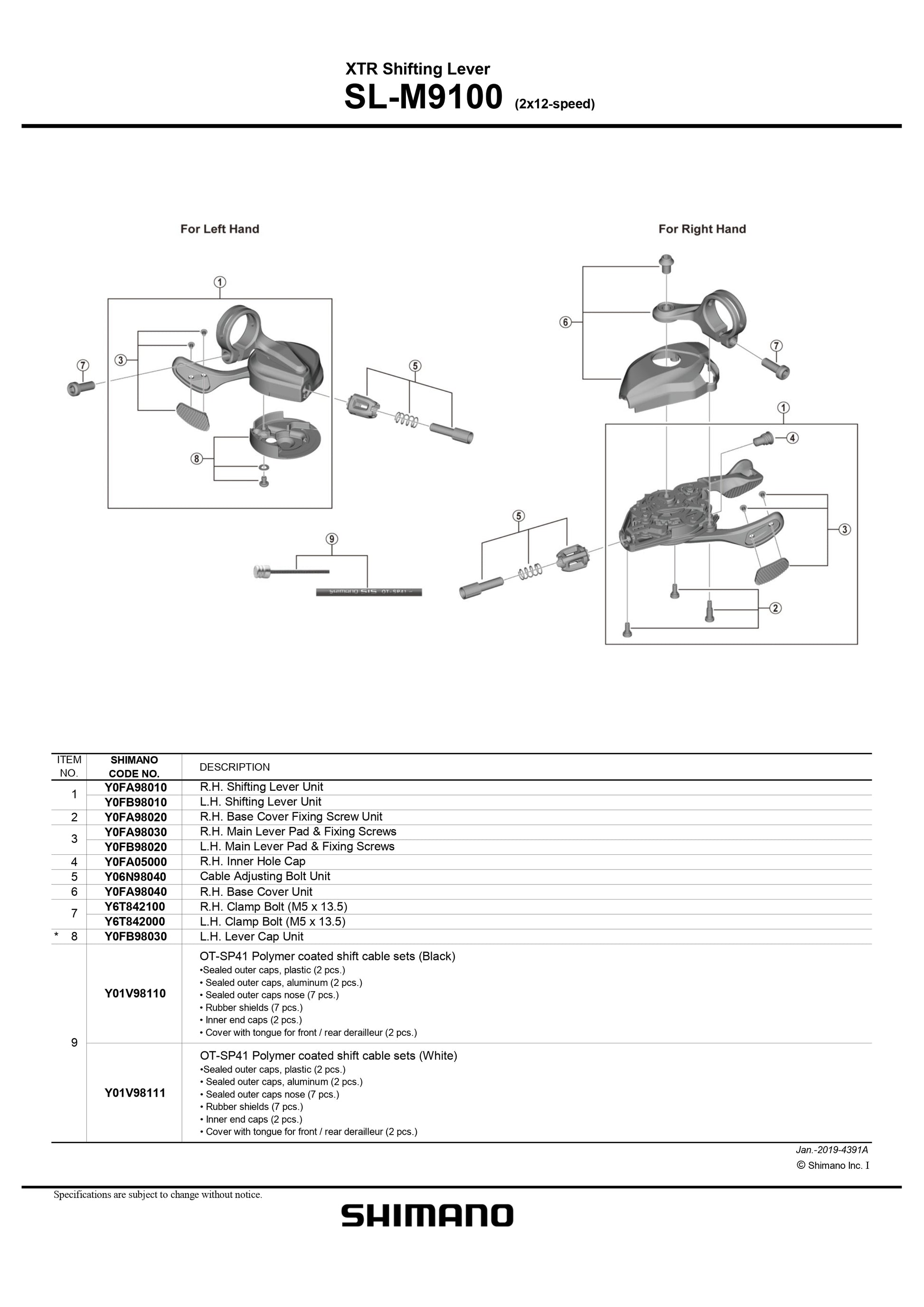 SHIMANO XTR SL-M9100 Shifting Lever 12-Speed Right Hand Base Cover Unit - Y0FA98040
